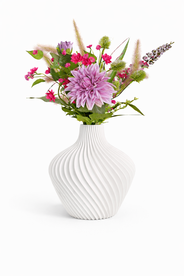 De bijzondere, gedraaide vorm geeft de vaas een moderne en luxe uitstraling en is verkrijgbaar in verschillende kleuren, zodat je altijd een variant vindt die perfect bij jouw interieur past. Of je nu kiest voor een kleurrijk boeket of een minimalistische tak, deze vaas laat alles tot zijn recht komen.
