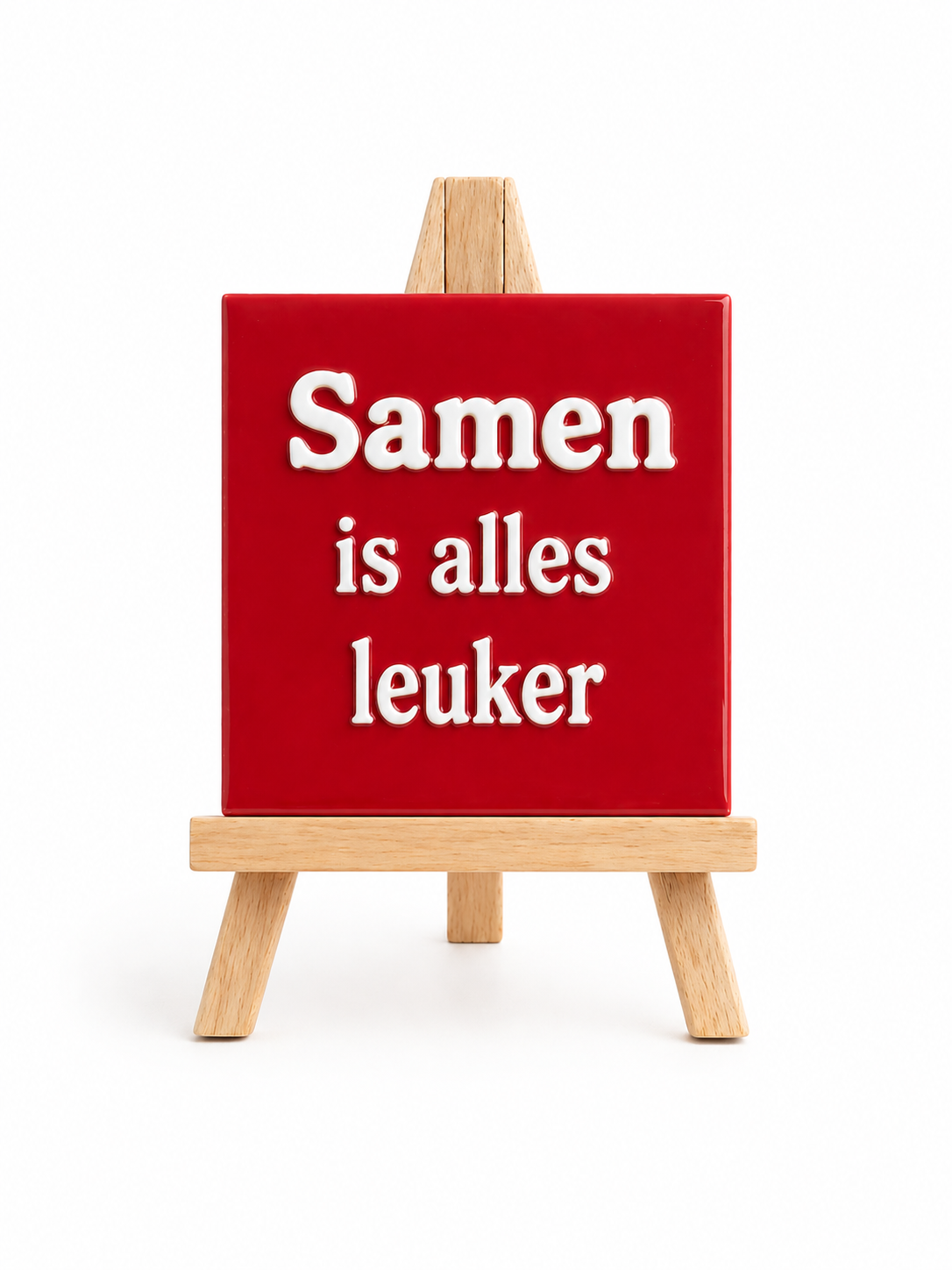 Dit stijlvolle decorstuk herinnert je elke dag aan wat écht telt. Met de warme rode kleur en de krachtige boodschap Samen is alles leuker brengt het direct sfeer en positiviteit in huis.